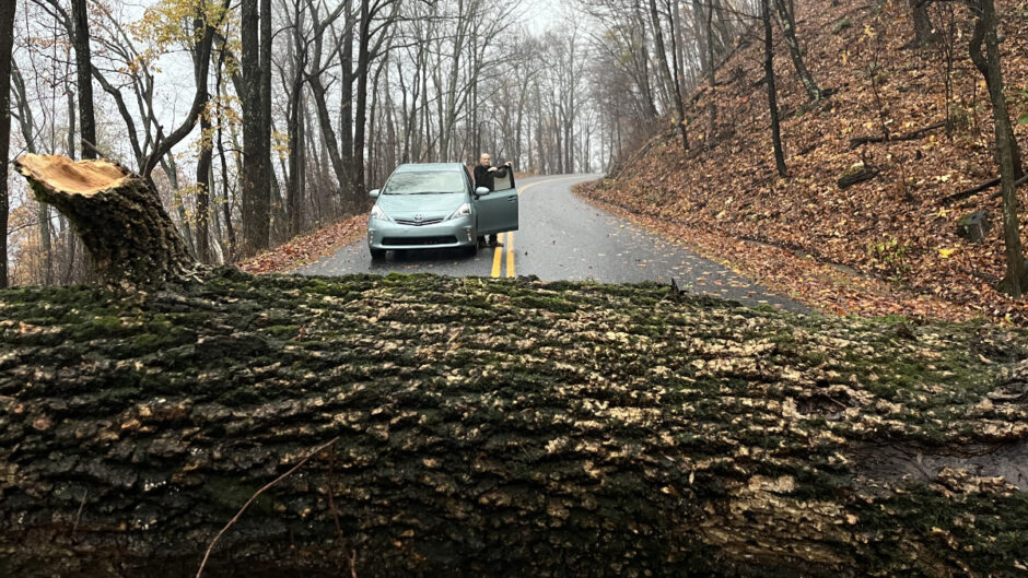 I took some Humalog and went to sleep. I felt like we’d seen the Blue Ridge Parkway in a very unusual way, one that most people don’t get to see. Dead leaves, intense fog, and hurricane-driven trees in our path. Sometimes travel is, in its own peculiar way, simply awesome.
